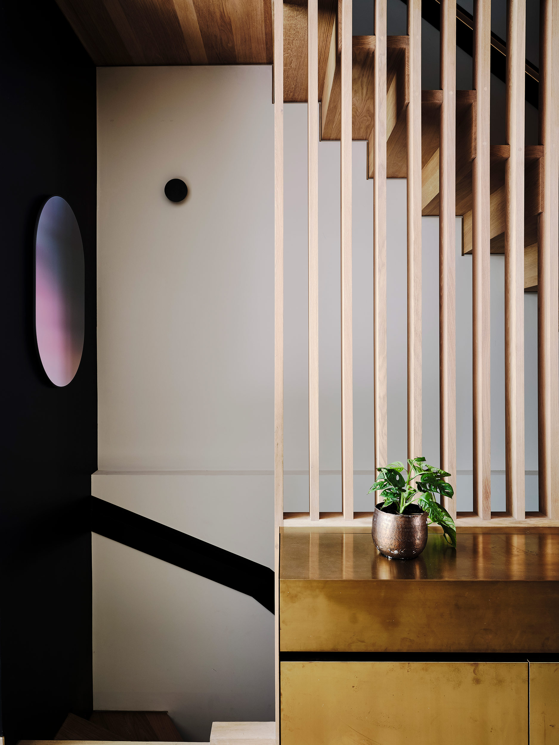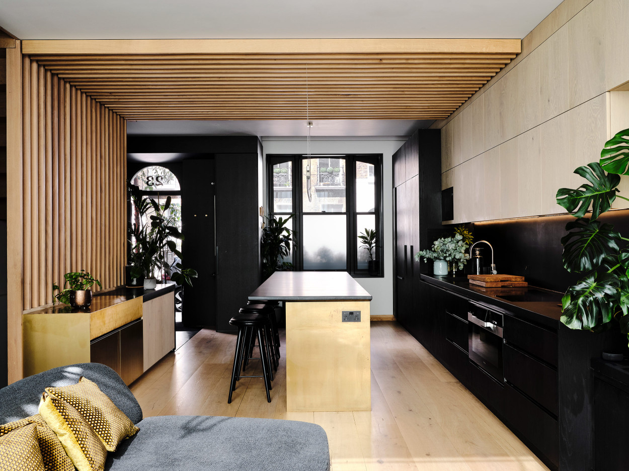 A new-build house in Marylebone. The front facade had to be retained, but behind it we created a brand new house laid out on seven floors. As is frequently the case with our projects, in close collaboration with our client, we created all aspects of the architecture, interior design, and craft.